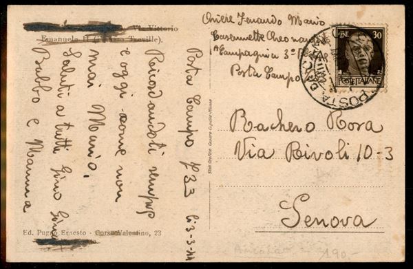 Posta da Campo 753 - 30 cent (249 - Regno) su cartolina per Genova del 4.3.44