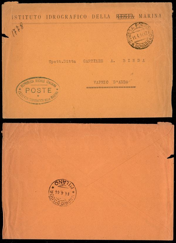 Poste/Repubblica Sociale Italiana/Istituto Idrogeografico della Marina - busta in franchigia da Stresa a Vaprio d'Adda del 11.4.44