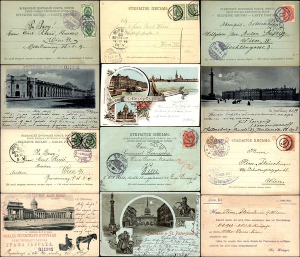 RUSSIA - 1896/1900 - Insieme di 7 cartoline diverse da San Pietroburgo a Vienna