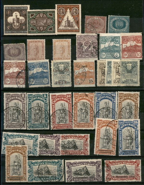 SAN MARINO - 1894/1918 - Piccolo insieme di 34 valori del periodo - nuovi e usati - da esaminare (500+)