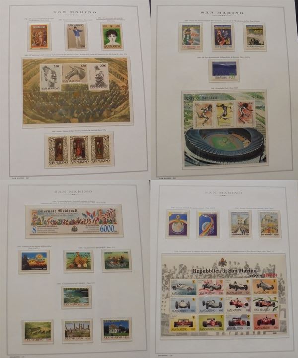 SAN MARINO - 1986/1998 - Collezione di serie complete di valori libretti e foglietti del periodo montata su fogli e album Marini - gomma integra (660+)
