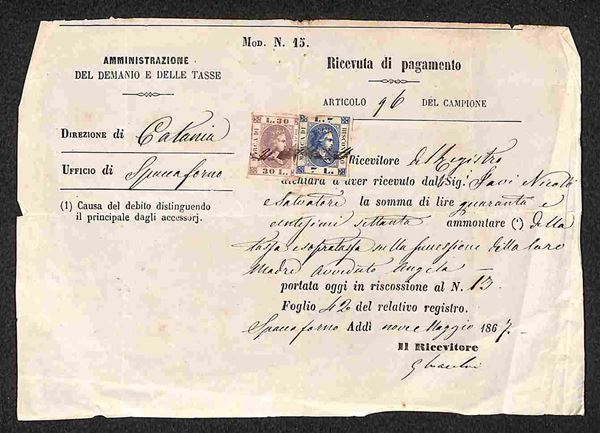 Spaccaforno 9.5.67 - ricevuta di pagamento con Marche di Riscontro (Unificato 8 + 13)