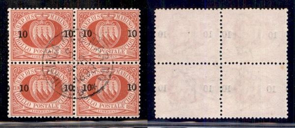 1892 - 10 su 20 cent Stemma (11) - quartina - Usato (110)