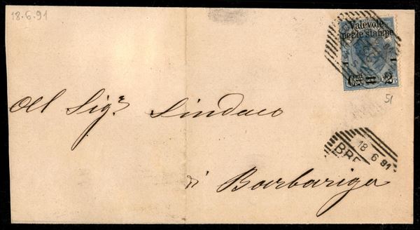 Ampio frammento affrancato con 2 cent valevole per le stampe (51) da Brescia 18.6.91 per Barbariga - ex coll. Provera