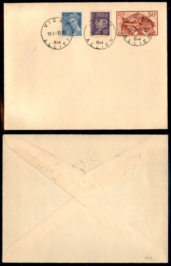 Busta postale La Marseillaise con complementari usata a Vichi 30.10.44