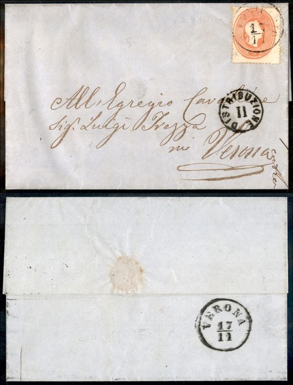 Distribuzione II (P.ti 4) - 5 soldi (33) su lettera da S. Bonifacio a Verona del 17.11.61