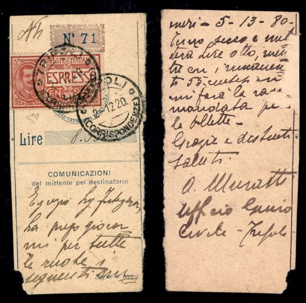 Espressi - 25 cent (1) - ricevuta Vaglia da Tripoli del 2.12.20 - Diena