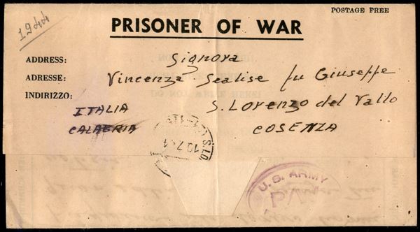 Prigionieri di Guerra - busta lettera da P/W da Oran (Algeria) per Cosenza del 1944
