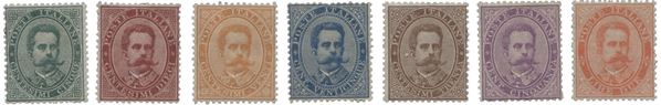 1879 Regno - Re Umberto I° serie di sette valori dal 5 cent al 2 lire - serie con ottime centrature - Oliva - (37/43)
