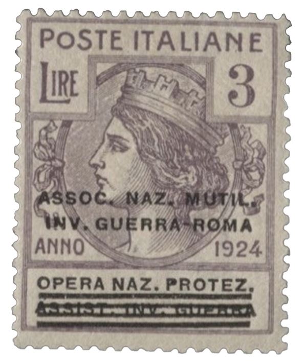 1924 Regno - Parastatali 3 lire Assoc. Naz. Mutil. Inv. Guerra Roma ottimamente centrato con varietà soprastampa fortemente spostata in basso - cert. Avi - (76ab)