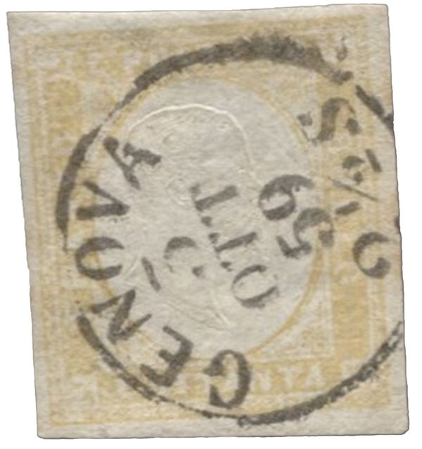 80 cent giallo ocra pallido molto bene marginato - Genova 3.10.59 - Sorani - (17A)