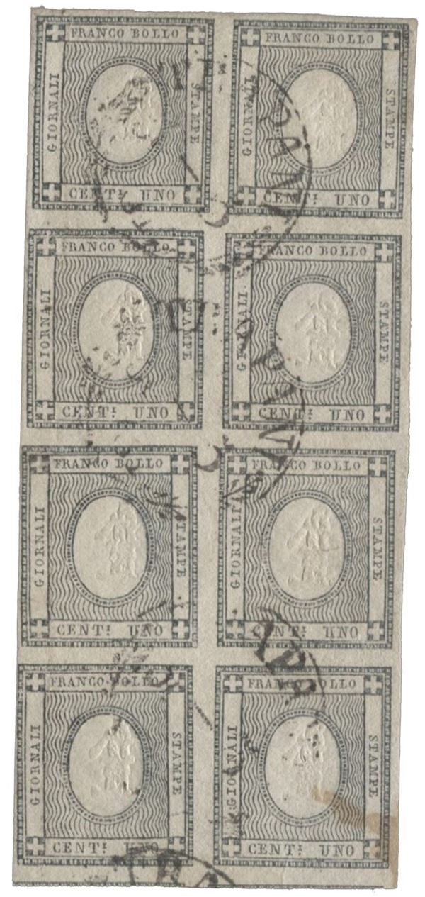 Blocco di 8 del centesimo grigio verdastro - margini in ordine - Trapani - raro - (19b)