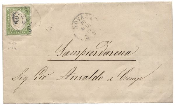 Circolare recante 5 cent verde giallo ottimamente marginato - Novara 19.3.59 - isolato - fresco raro insieme - ED + Colla - (13Be)