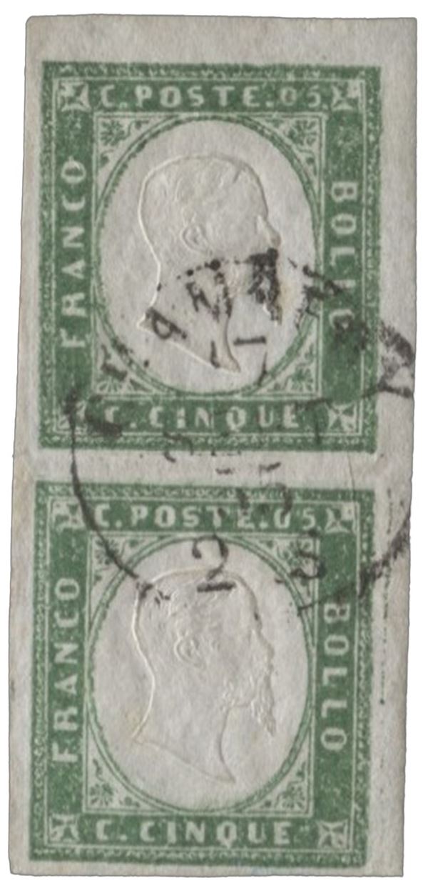 Coppia verticale angolo di foglio del 5 cent verde pisello - grandi margini - 17.9.55 - rara - ED - (13c)