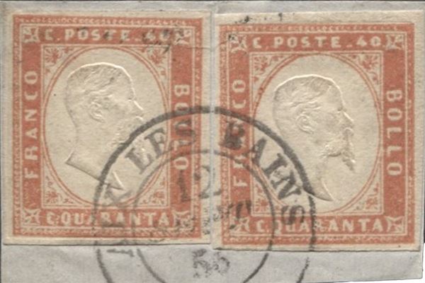Frammento recante 2 es. del 40 cent vermiglio - buoni margini - Aix Les Bains - (16a)