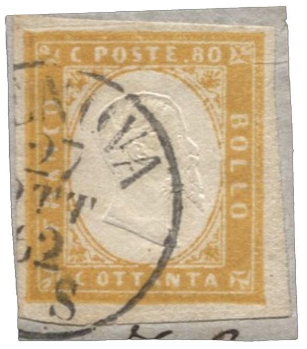 Frammento recante 80 cent arancio carico con ottimi margini - Genova 27.10.62 - AD - (17D)