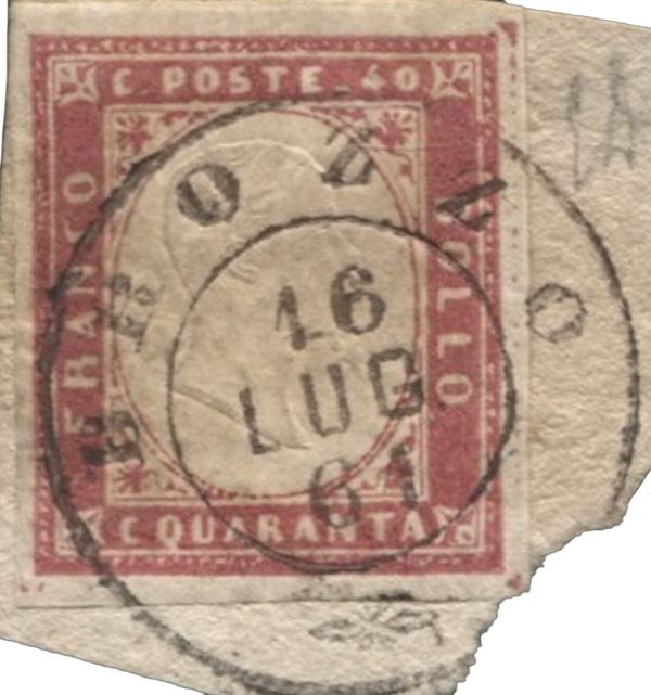 Frammento recante un 40 cent rosa lilla scurissimo con ottimi margini - Brozzo 16.7.61 in DC - RARISSIMO - Em.D + Bolaffi + Raybaudi - (16Cg)