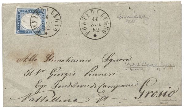 Lettera da Ponte di Legno (P.ti 8) 14.7.62 recante 20 cent ottimamente marginato - Bolaffi - (15D)