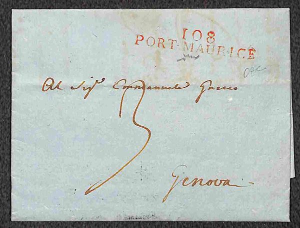 1806/1862 - Cinque lettere con bollature differenti in rosso ed in nero di Porto Maurizio - una con indicazione manoscritta - la maggior parte firmate Chiavarello