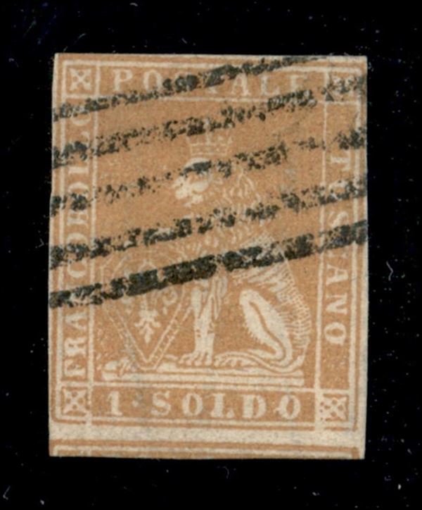 1857 - 1 soldo ocra chiaro (11a) con ampi margini e parte dell'esemplare inferiore - usato - cert. Alberto Diena + Enzo Diena