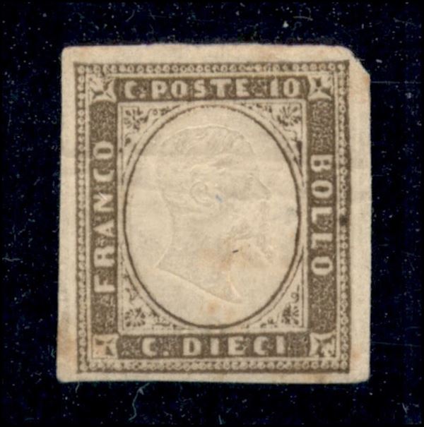 1858 - 10 cent terra d'ombra chiaro (14a cat.4750) - nuovo con gomma originale - ben marginato e di bell'aspetto ma difettoso - attestato Manzoni