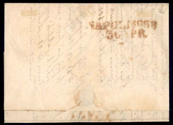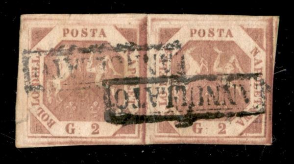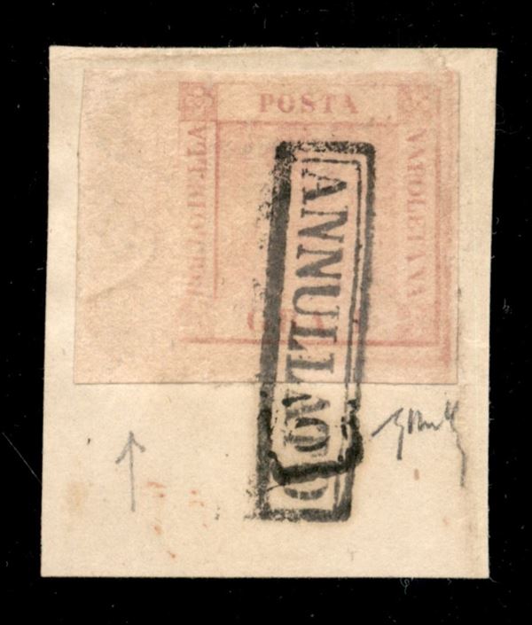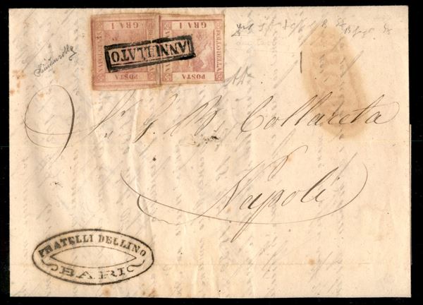 1858/1859 - Frammento con 1 grano (4) con varietà filigrana sul bordo laterale sinistro - completa il lotto una lettera con due esemplari del 1 grano e una coppia sciolta del 2 grana