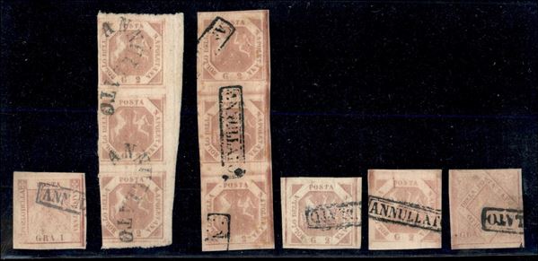1858/1859 - Piccolo insieme di valori usati - incluso un 20 grana rosa chiaro II tavola