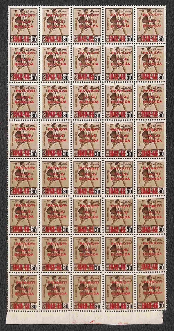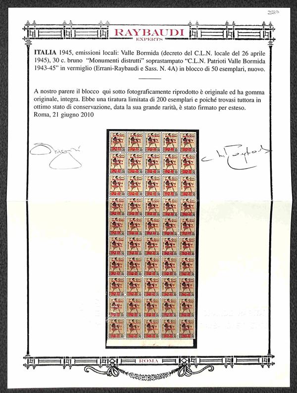 1945 - 30 cent soprastampe in vermiglio (4A) - blocco di 40 (posizioni 11/50) - gomma integra - raro insieme - Cert oro Raybaudi