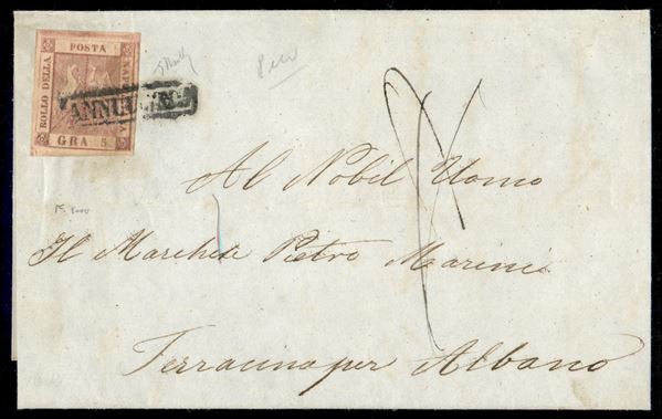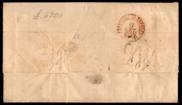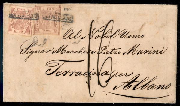Due lettere da Napoli per Albano via Terracina - la prima di primo porto con tassa 8 bajocchi pontifici e la seconda di triplo porto napoletano con tassa 16 bajocchi pontifici (8 - 9 + 11)