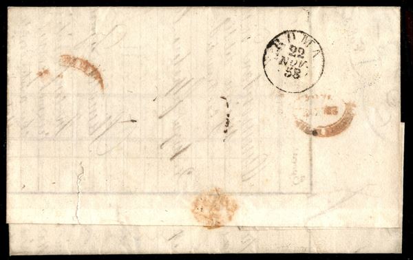 Frode postale - Modulo affrancato con esemplare del 1 grana (3) anziché 5 grana (tariffa corretta) da Napoli a Roma del 22.11.58 - Chiavarello