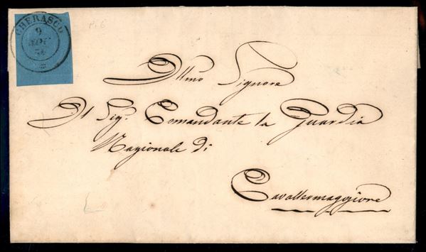 Lettera affrancata con 20 cent azzurro (5) angolo di foglio inferiore sinistro - da Cherasco 9 NOV.54 per Cavallermaggiore