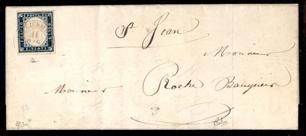 Lettera affrancata con 20 cent indaco (15Ab) ben marginato - da La Chambre 11 MAG.58 (P.tI 8) per S. Jean - raro e molto bello