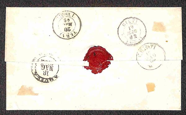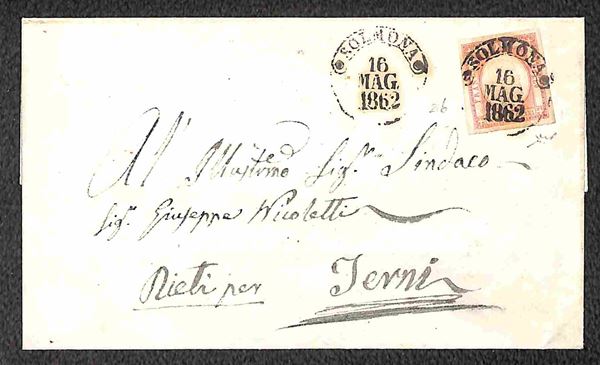 Lettera affrancata con 5 grana rosa lilla (21b cat.1650) da Sulmona 16 MAG.1862 per Terni - firma Chiavarello