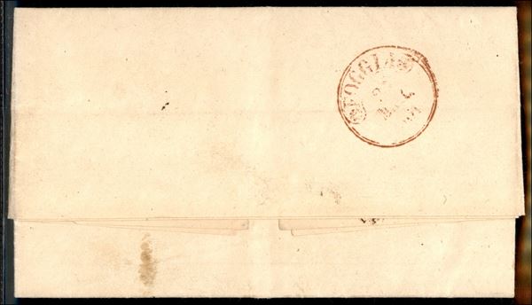 Lettera affrancata con 5 grana rosso carminio (21 cat.825) annullato Partenza da Napoli 23 MAR.1861 per Foggia