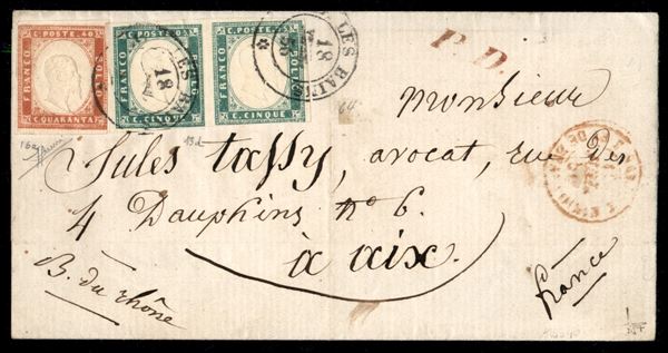Lettera affrancata con coppia orizzontale del 5 cent + un esemplare del 40 cent (13d + 16) da Aix Les Bains 18 FEV.56 per Aix en Provence