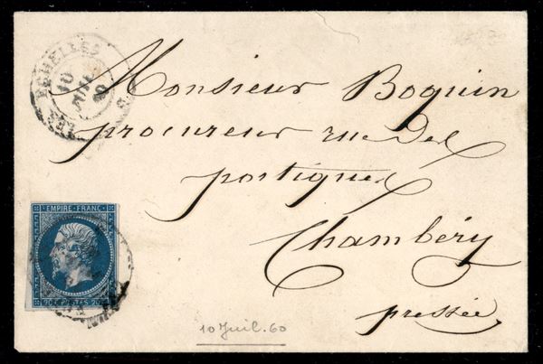 Lettera affrancata con valore di Francia 20 cent azzurro da Les Echelles 10 JUIL.60 per Chambery