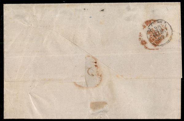 Lettera di doppio porto da Napoli 28 GIU.1860 affrancata con 10 grana carminio II tavola per Roma - tassata 16 bajocchi per il percorso pontificio