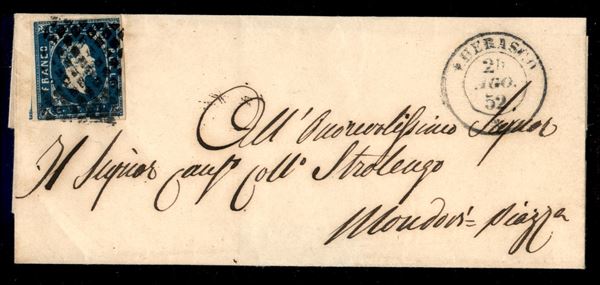 Letterina affrancata con 20 cent azzurro (2) da Cherasco 24 AGO.52 per Mondovi Piazza