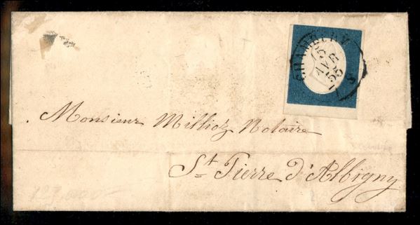 Letterina affrancata con 20 cent azzurro chiaro (8b) da Chambery 15 AVR.55 per S.Pierre d'Albigny