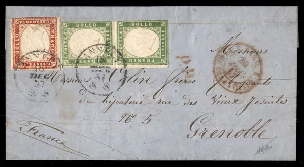 Letterina affrancata con coppia verticale del 5 cent + un esemplare del 40 cent (13Ad + 16A) da Annecy 18 DEC.57 per Grenoble