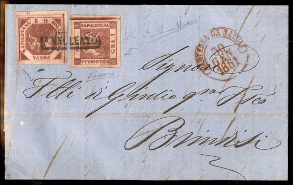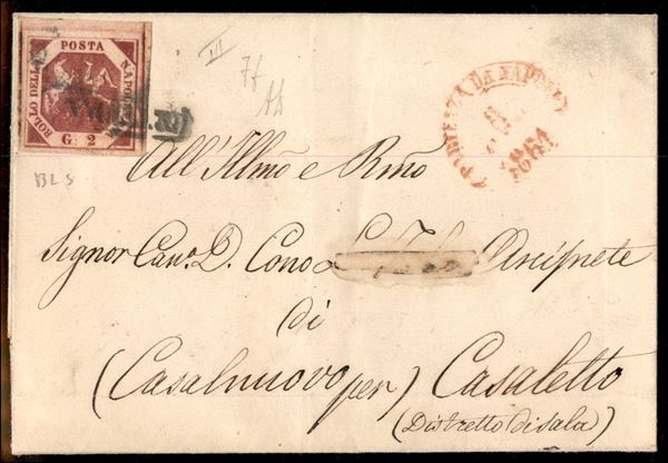 Lotto di quattro lettere con affrancature varie di ottima qualità e freschezza con valori da 1 gr. IIa Tavola e 2 gr. IIIa Tavola