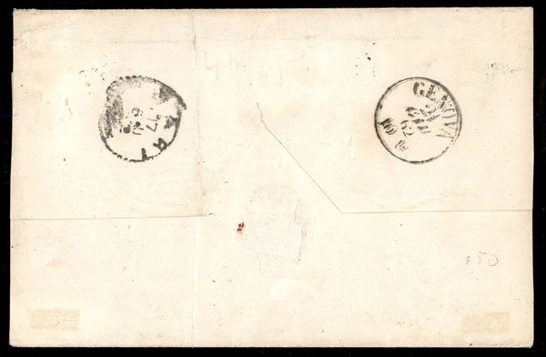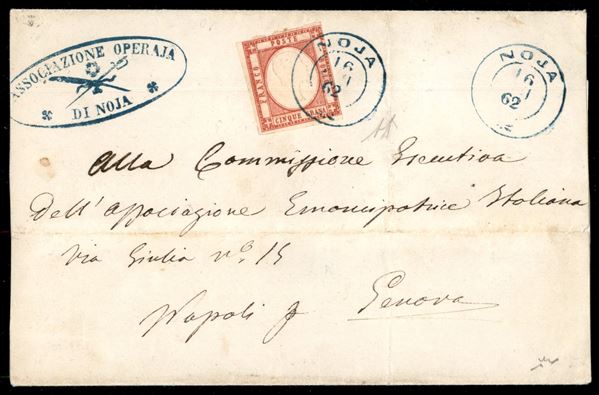 Noja doppio cerchio azzurro (p.ti 10) su 5 grana (21 - difetti) su sovracoperta del 16 GIU 62 per Genova - D'effetto - Firme A.Diena e Chiavarello