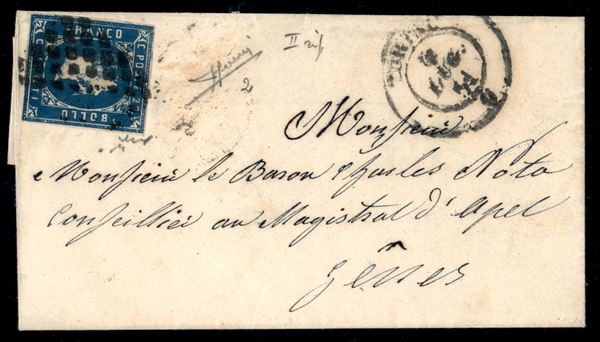 Piccola lettera da Torino 4 LUG.51 per Genova affrancata con 20 cent azzurro II° riporto - francobollo con bella varietà di stampa (2 cat.1800+) - firma Chiavarello e Sorani