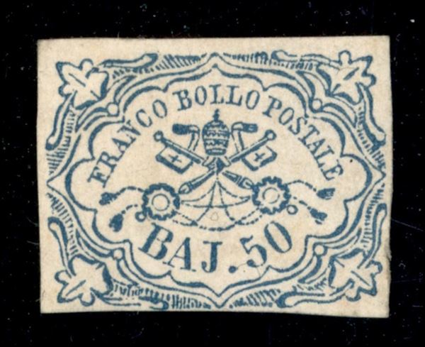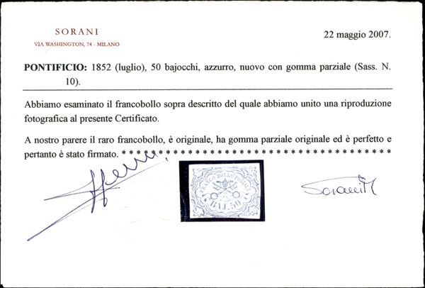 1852 - 50 baj (10) - bene marginato - gomma originale parziale - cert. Sorani