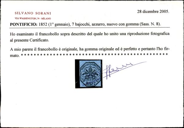 1852 - 7 baj (7) - bene marginato - gomma originale con leggera traccia di linguella - cert. Sorani