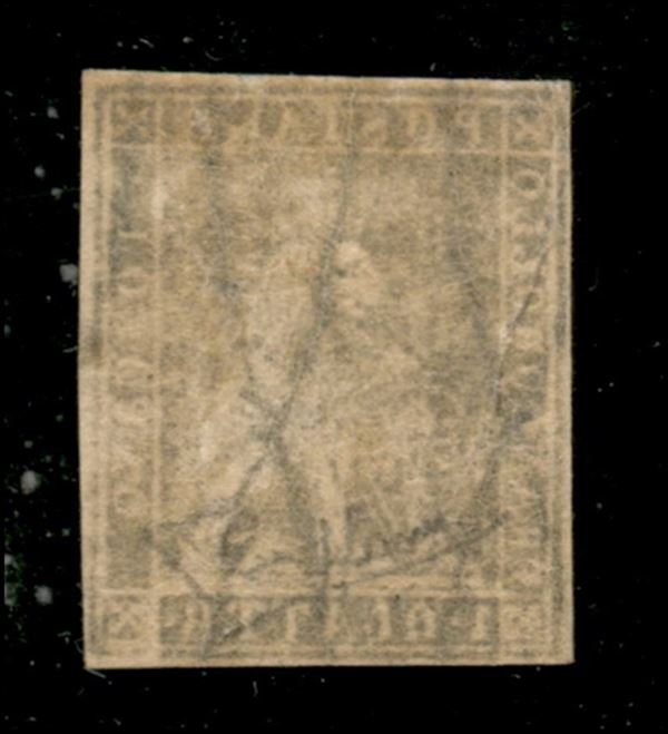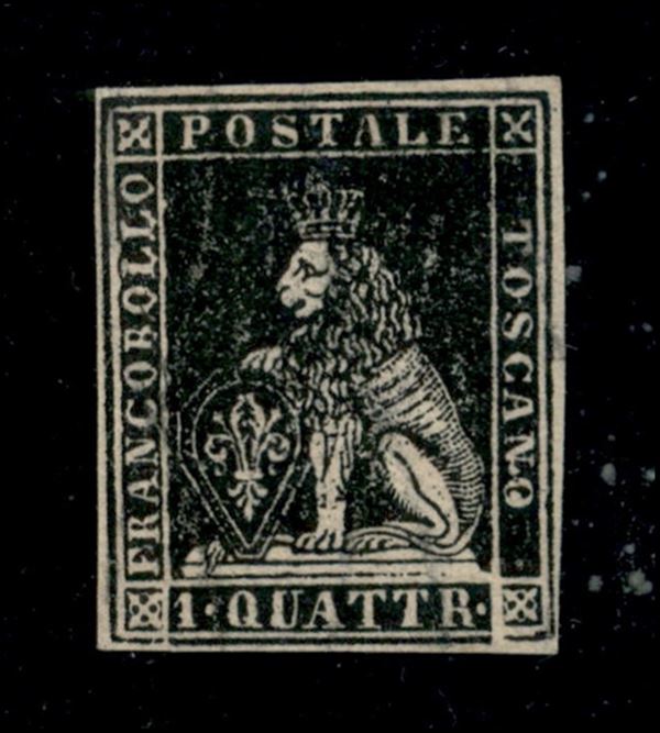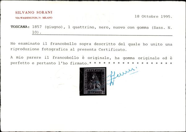 1857 - 1 quattrino nero II emissione (10 cat.3500) - nuovo con gomma originale - fresco e ben marginato - cert. Sorani