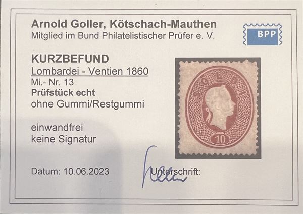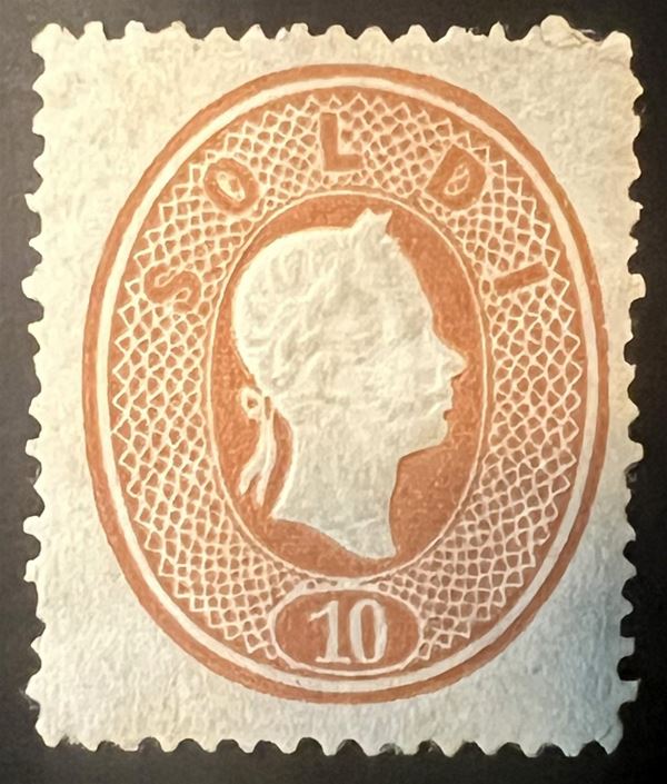 1860 - 10 soldi bruno mattone (34) - nuovo con parte di gomma originale - cert. Goller