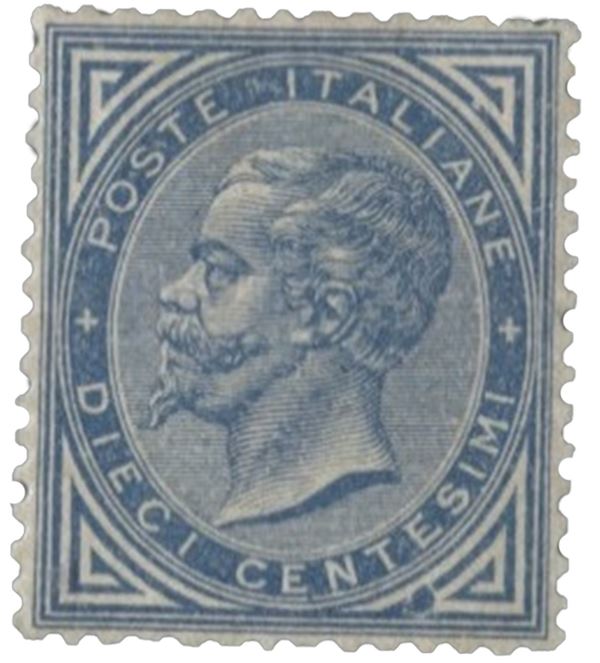 1877 Regno - Vittorio Emanuele 10 cent azzurro con ottima centratura - cert. RD - (27)