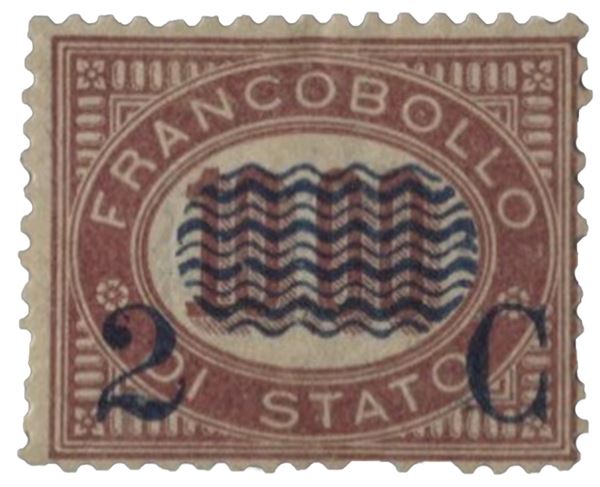 1878 Regno - Mascherina 2 cent su 10 lire - cert. Raybaudi - (36)