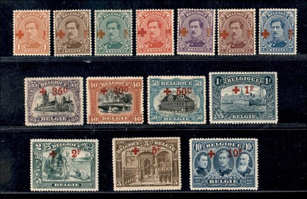 1918 - Pro Croce Rossa (150/163) - serie di quattordici valori soprastampati in rosso - gomma integra - cert. Eichele